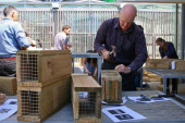 People build trap boxes (jpg 161KB) Author: Laura Honey Copyright: DOC, Crown Copyright License: CC-BY Description: DOC staff build trap boxes at Conservation House |